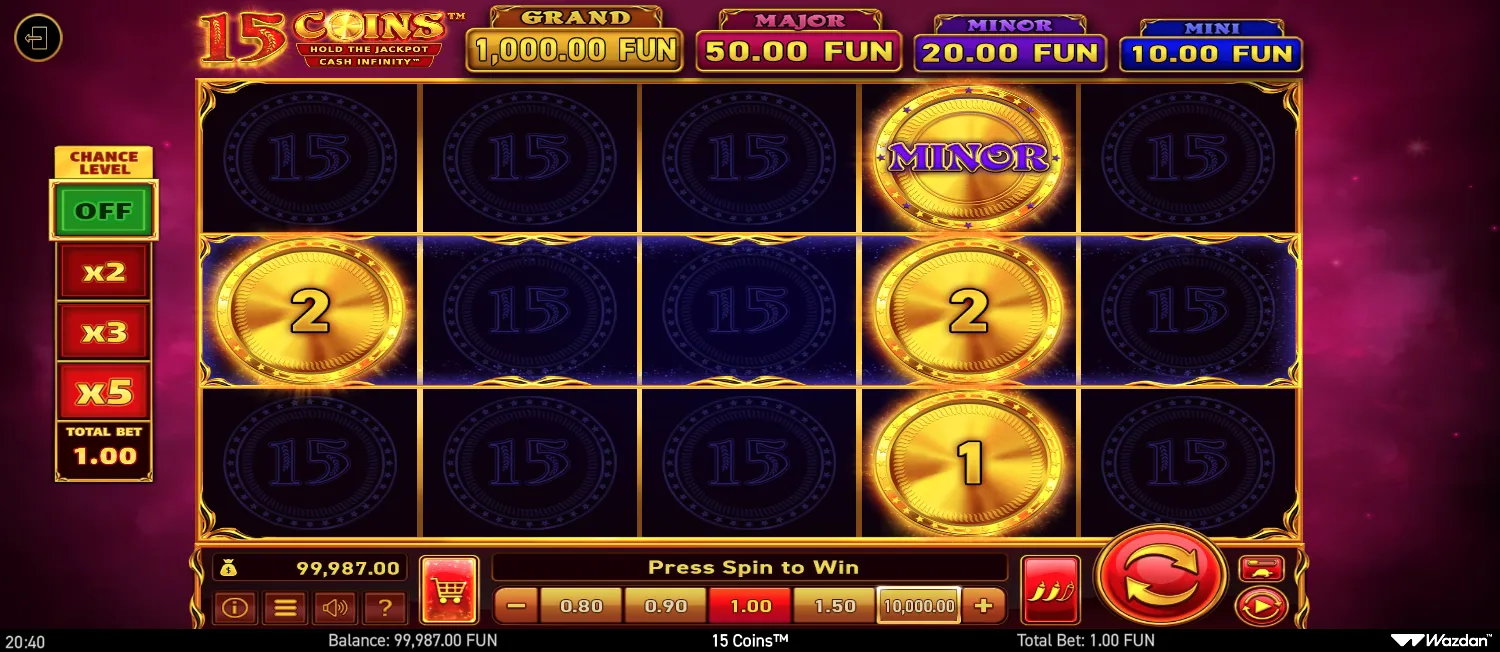 15 Coins does not include a Bonus Buy feature. You need to trigger the bonus rounds naturally during gameplay by landing the required scatter or bonus symbols.