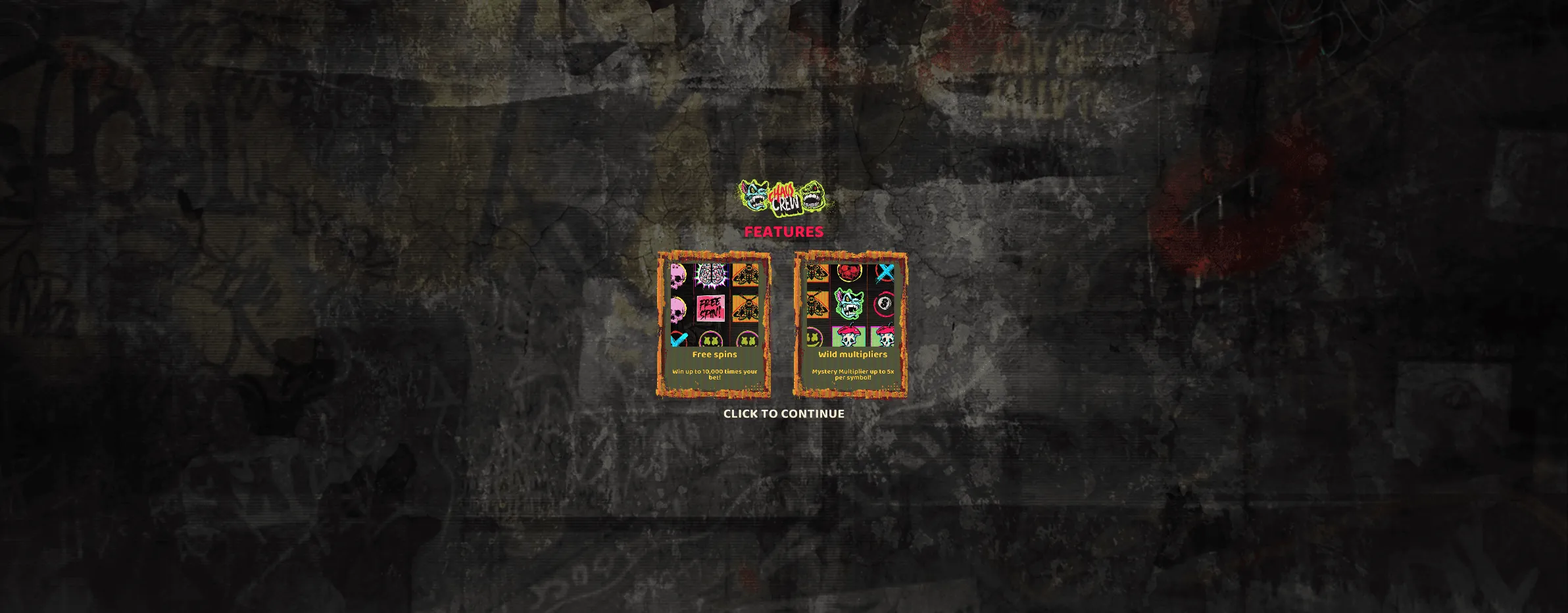 Play Chaos Crew slot for free in demo mode. 96.3% RTP, High volatility, 10000x max win.