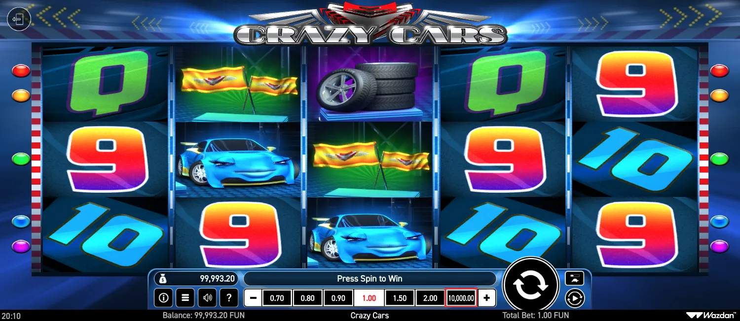 Crazy Cars is classified as a 5 volatility slot. This means that you can expect more frequent but smaller wins, making it ideal for extended play sessions with a smaller bankroll.