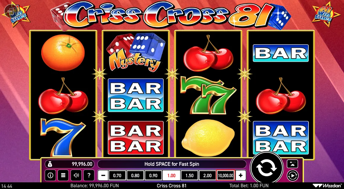 Criss Cross 81 is classified as a med-high volatility slot. This means that you can expect more frequent but smaller wins, making it ideal for extended play sessions with a smaller bankroll.