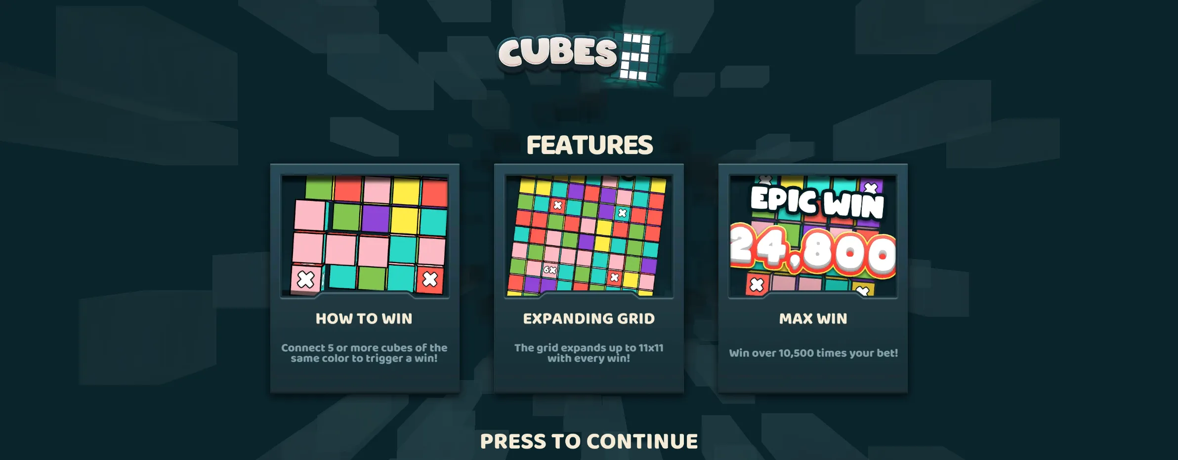 Play Cubes 2 slot for free in demo mode. 96.3% RTP, High volatility, 10500x max win.
