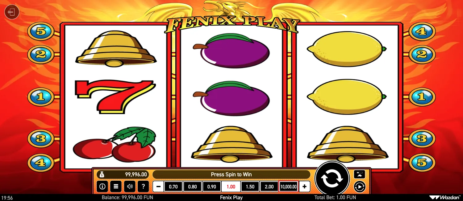 Fenix Play has an RTP (Return to Player) of 96.44%, which is above the industry average. The game also offers multiple RTP configurations: 96.44% (maximum), 95.44% (medium), and 94.44% (minimum).