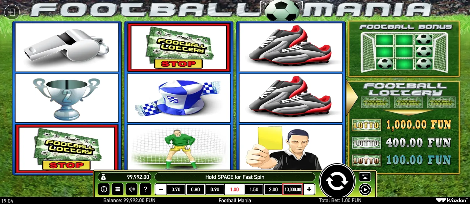 Football Mania is classified as a med-high volatility slot. This means that you can expect more frequent but smaller wins, making it ideal for extended play sessions with a smaller bankroll.