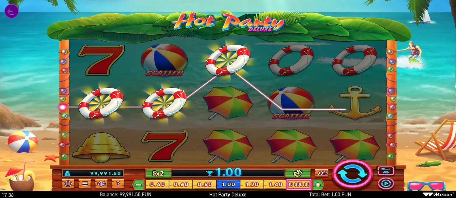 Hot Party Deluxe is classified as a variable volatility slot. This means that you can expect more frequent but smaller wins, making it ideal for extended play sessions with a smaller bankroll.