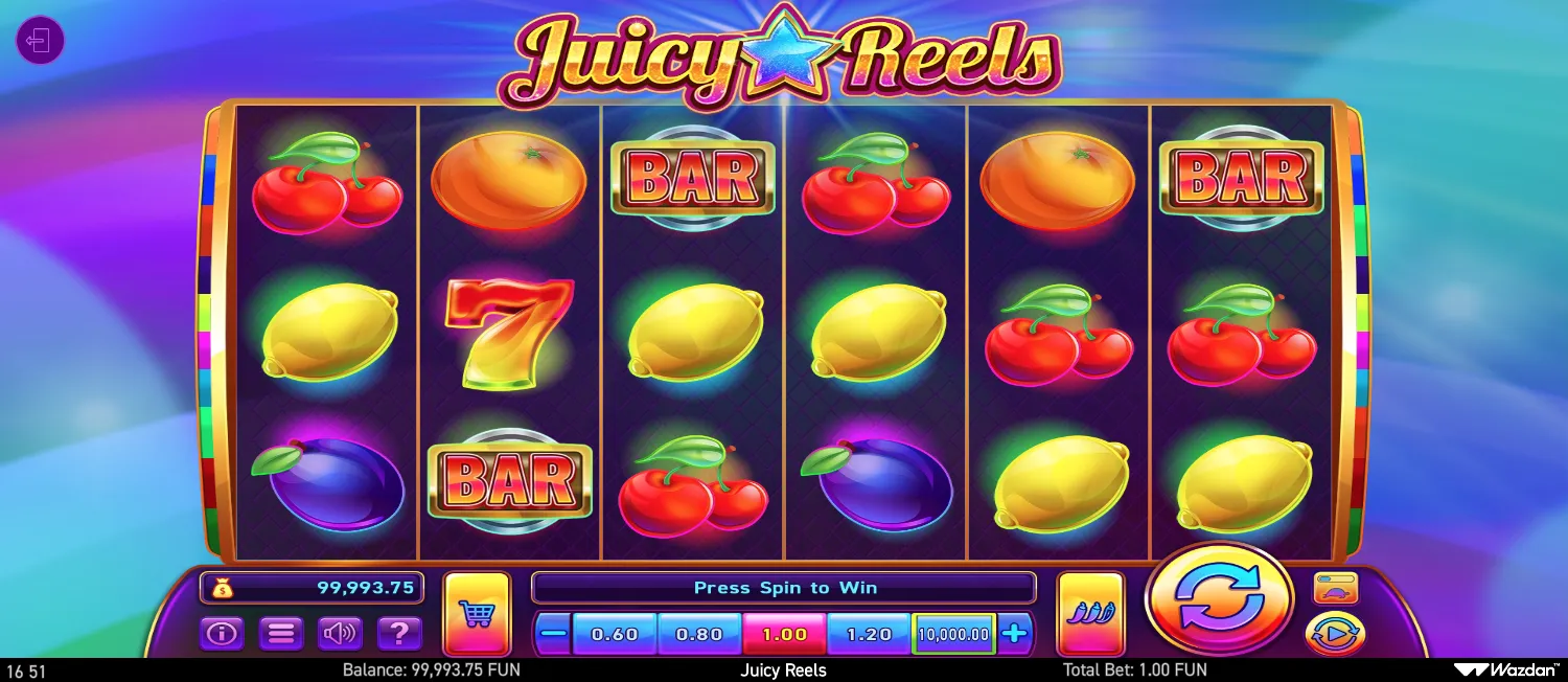 Yes! You can play Juicy Reels in demo mode completely free without registration. The free demo version includes all game features, bonus rounds, and mechanics, allowing you to test the game before playing with real money.