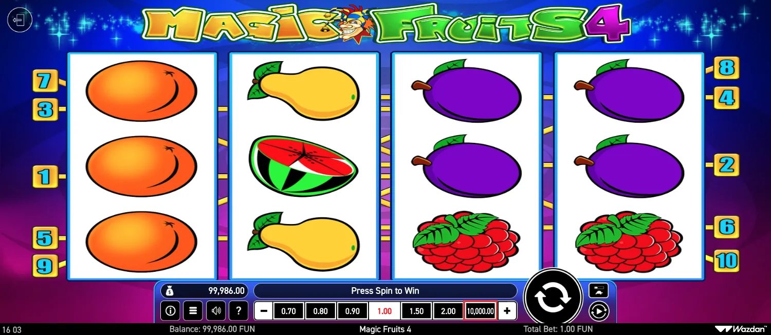 Yes! You can play Magic Fruits 4 in demo mode completely free without registration. The free demo version includes all game features, bonus rounds, and mechanics, allowing you to test the game before playing with real money.
