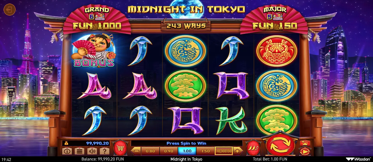 Midnight in Tokyo does not include a Bonus Buy feature. You need to trigger the bonus rounds naturally during gameplay by landing the required scatter or bonus symbols.