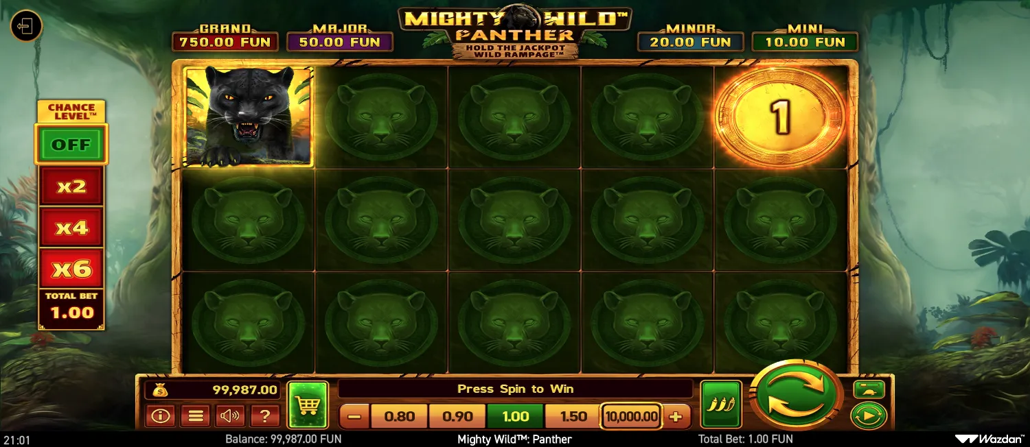 Mighty Wild: Panther does not include a Bonus Buy feature. You need to trigger the bonus rounds naturally during gameplay by landing the required scatter or bonus symbols.