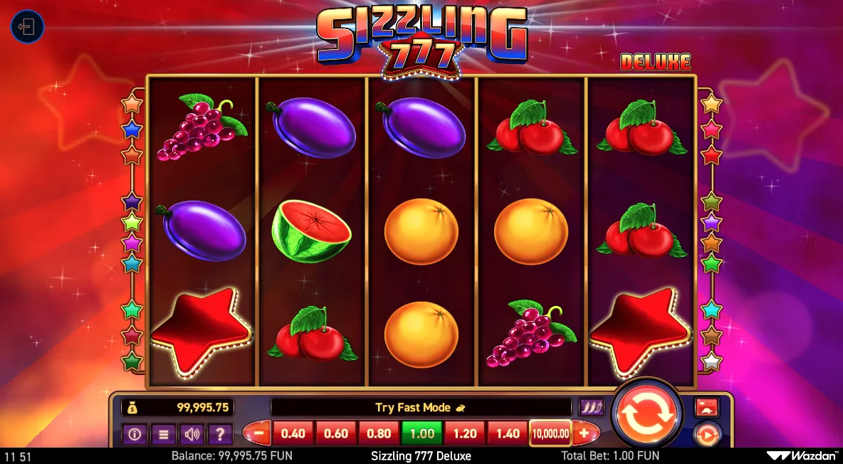 Sizzling 777 Deluxe is classified as a variable volatility slot. This means that you can expect more frequent but smaller wins, making it ideal for extended play sessions with a smaller bankroll.